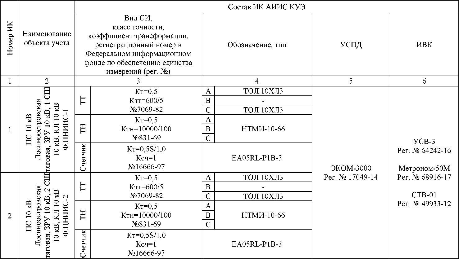 Комплектность АИИС КУЭ представлена в таблице 7.