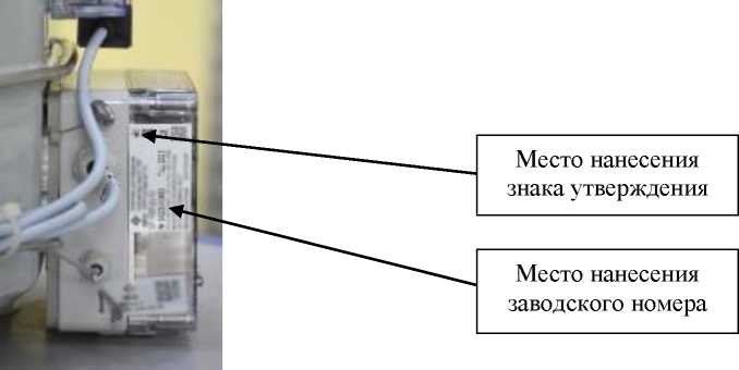 Заводской номер в виде арабских цифр наносится методом термопечати, металлографики и/или гравировки на шильдик, расположенный на корпусе корректора, входящего в состав комплекса. Места нанесения заводского номера и знака утверждения типа представлены на рисунке 6.