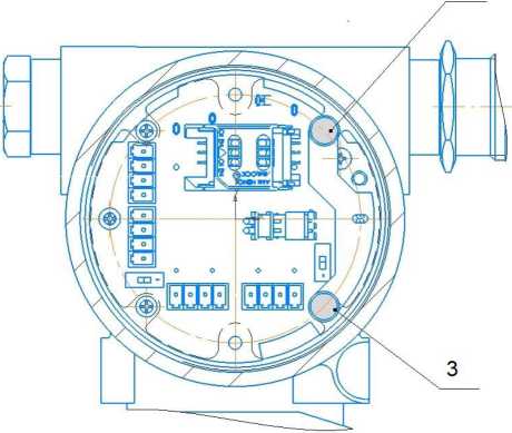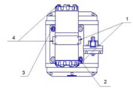 Знак утверждения типа наносится на маркировочную табличку, закрепленную на корпусе ЭБ и РШ (при наличии) методом аппликации или лазерной гравировки. Заводской номер, состоящий из шести арабских цифр, наносится на маркировочную табличку, закрепленную на корпусе ЭБ. Формат и место нанесения заводского номера (1) и знака утверждения типа (2) представлены на рисунке 17.Ограничение доступа к местам настройки (регулировки), расположенным в ЭБ, осуществляется путем нанесения свинцовых или мастичных пломб с изображением знака поверки на винтах крепления ЭБ к УПР. Схема пломбировки от несанкционированного доступа, обозначение мест нанесения знаков поверки представлены на рисунках 10 - 16.