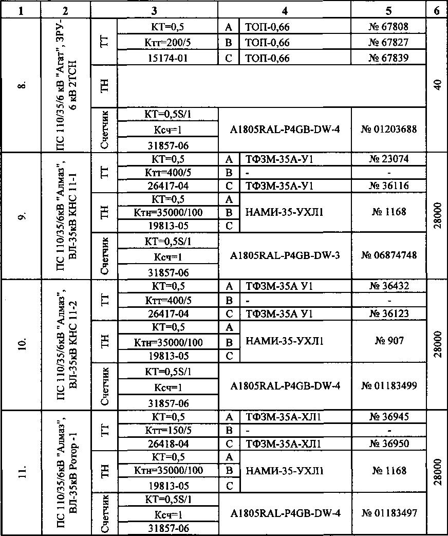 6. Допускается замена измерительных трансформаторов и счетчиков на аналогичные утвержденных типов с метрологическими характеристиками не хуже, чем у перечисленных в Таблице 1. Замена оформляется актом в порядке, регламентированном МИ 2999. Акт хранится совместно с настоящим описанием типа АИИС КУЭ ОАО «Сургутнефтегаз» как его неотъемлемая часть.