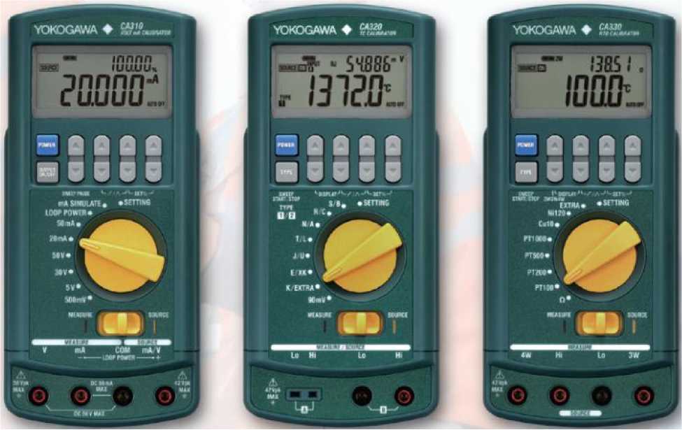 Калибраторы СА310 предназначены для воспроизведения и измерения сигналов силы и напряжения постоянного тока; СА320 - для воспроизведения и измерения сигналов термопар различных градуировок; СА330 - для воспроизведения и измерения сигналов электрического сопротивления, сигналов термопреобразователей сопротивления.