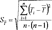 Т - среднее значение результатов измерений температуры, °C; п - число измерений.