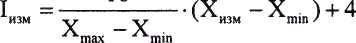 а) при линейной функции преобразования значение силы тока 1^, мА, рассчитывают по
