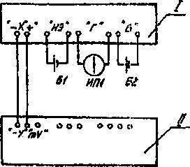 ИП1 - внешний нулевой указатель; Б1- нормальный элемент; Б2 - батарея питания; I - образцовый потенциометр; И - прибор.