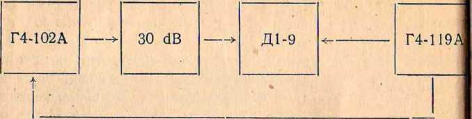 при установке аттенюатора прибора Г4-1О2А .в положение К)'1 по красной шкале с дополнительным ослаблением 30 dB на чщеД1-9;