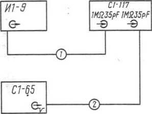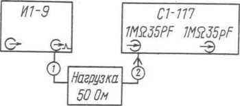 17 - делитель 1:10; 7 - нагрузка 50 Ом; 71 - осциллограф CI-II7;