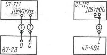 Рис. II. Подключение приборов при определении основной погрешности временных измерений цифровым измерителем: