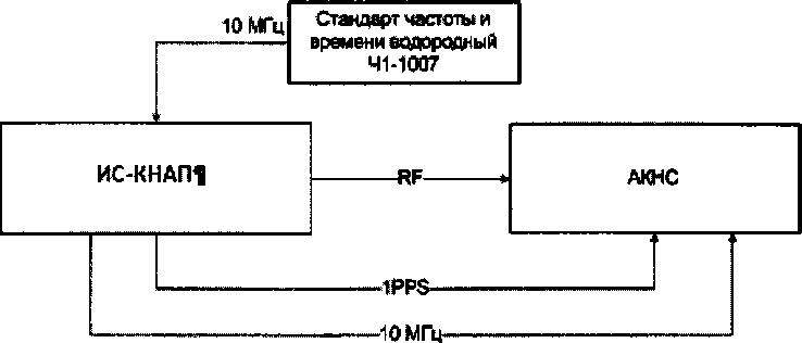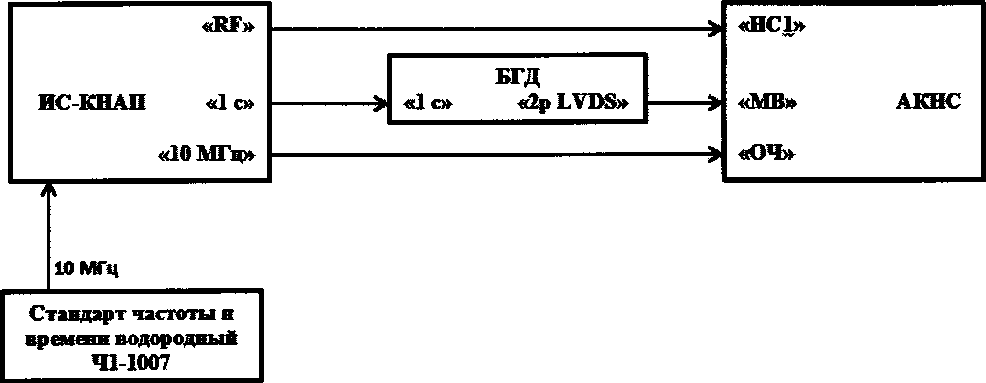 Рисунок 5 - Схема измерений для определения погрешности формирования сигнала синхронизации БГД относительно метки времени, передаваемой в навигационном сигнале, формируемом ИС-КНАП