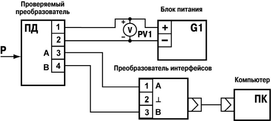 P - входная измеряемая величина (примеры подключения к датчику эталонных средств измерений входной величины и задатчиков давления приведены на схемах 4-6);