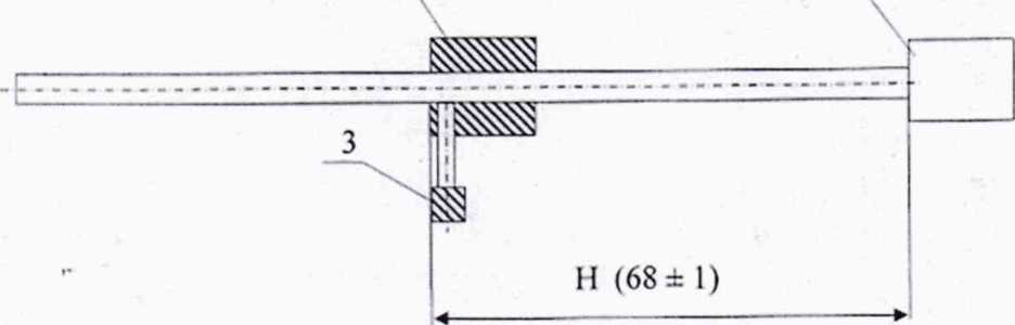 10.1.3 Установить шток поверочный (рисунок 1) втулкой (2) на левый держатель захвата шток-мешалки с предварительно зафиксированной, примерно в средине штока, подвижной втулкой (1).