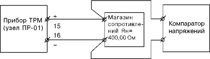 7.2.1. Подключить к входу прибора по трехпроводной линии магазин сопротивления в соответствии со схемой, приведенной на рис. 1. Сопротивления проводов в линии должны быть равны друг другу и не превышать величины 15 Ом. Установить на магазине сопротивлений значение 50,000 Ом при калибровке модификаций приборов, относящихся к I группе или значение 100,000 Ом - при калибровке приборов II группы.