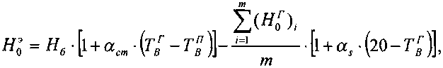 где Нб - базовая высота меры вместимости, значение которой определяется при поверке; аст - температурный коэффициент линейного расширения материала стенки меры вместимости, значение которого принимают равным 12,5-10’6 1/°С для стали и 10 -10'6 1/°С для бетона;