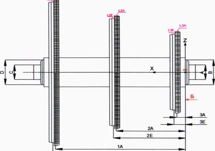 провести измерение точек «Т1; Т2; ТЗ» посередине лопаток (точки симметрии) на расстоянии ЗА; 2А; 1А от плоскости «Б», используя при измерении самую верхнюю лопатку по оси Z;