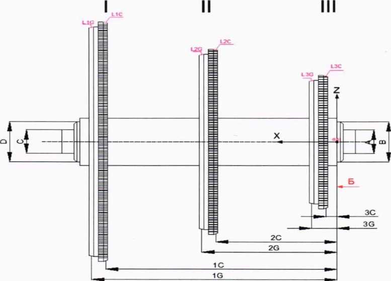 построить линии (Ьзс; L2G; Lie) на Ш-П-1 ступенях по 4 точкам; сконструировать плоскости перпендикулярные оси X на расстоянии 3G - 2G - 1G соответственно для ступеней Ш-П-1 от базовой плоскости «Б»;