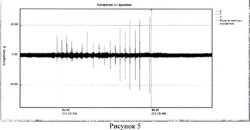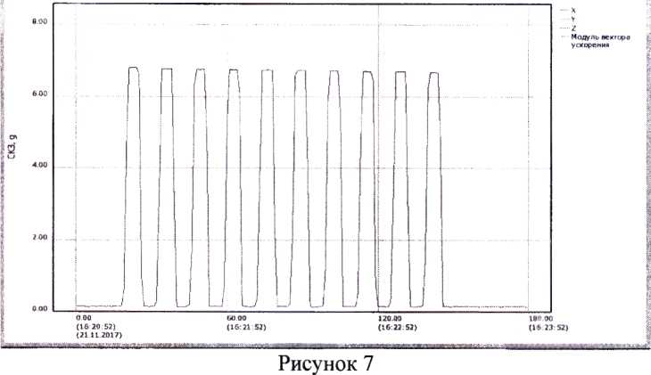 7.2.5 Регистратор считать работоспособным, если операции по п. 7.2.1-7.2.4 выполнены успешно и на графике присутствуют результаты измерений ускорение по всем трем осям. В противном случае регистратор дальнейшей поверке не подвергается, бракуется и направляется в ремонт или для проведения настройки.