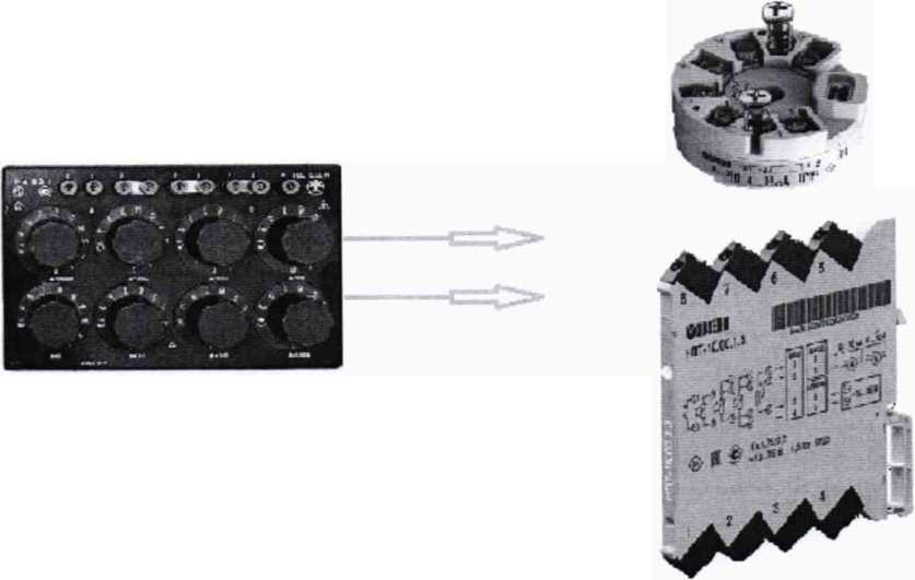 Подключение магазина сопротивления производить в зависимости от модели НПТ по двух- трех- или четырехпроводной схемам согласно РЭ, при этом сопротивления соединительных проводов должны быть равны и не должны превышать 15 Ом.