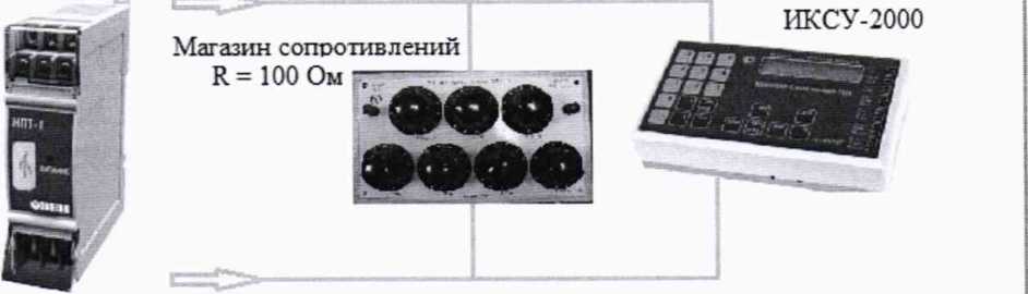 При определении основной приведенной погрешности преобразования с использованием в качестве эталонного оборудования входных сигналов калибратора-измерителя унифицированных сигналов эталонного ИКСУ-2000 (далее - ИКСУ-2000), необходимо подключить ИКСУ-2000 к НПТ по схеме, представленной на рисунке А.2 (Приложение А настоящей методики поверки).