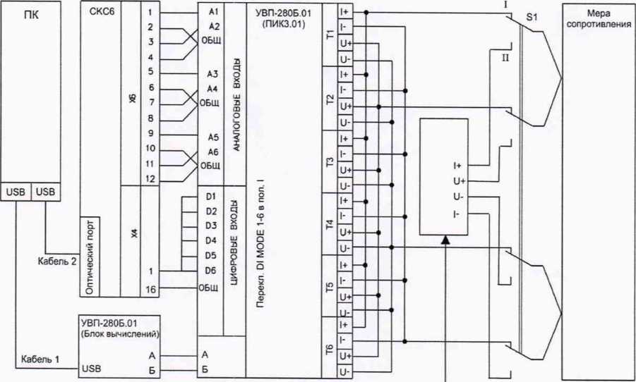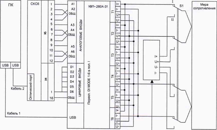 Схема поверки 1. Стенд СКС6 (п.п. 2.1.1.1 и 2.1.3.1), магазин сопротивлений или мера сопротивления (п. 2.1.2.1), ПК (только при применении программного обеспечения «Поверка УВП-280»),