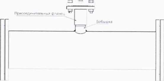 К трубе приваривается бобышка с наружной резьбой 2” и внутренним просветом не менее 47 мм. Высота резьбовой части бобышки не менее 3 см. На бобышку устанавливается присоединительный фланец 2” с внутренней резьбой 2”, высотой не менее 10 см.