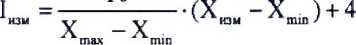 6.3.2.3 Если показания ИС можно просмотреть только в единицах измеряемой величины, то при линейной функции преобразования значение силы тока I^mA, рассчитывают по