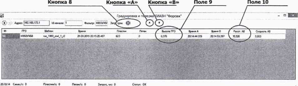 При осуществлении проездов, следует по каждому проезду фиксировать контролируемую комплексом высоту подвеса ГРЗ тестового автомобиля (поле 9), расстояние между пластинами номера в точках «А» и «В» (поле 10) и результаты измерения дальномера, закрепленного на автомобиле (Рисунок 5).