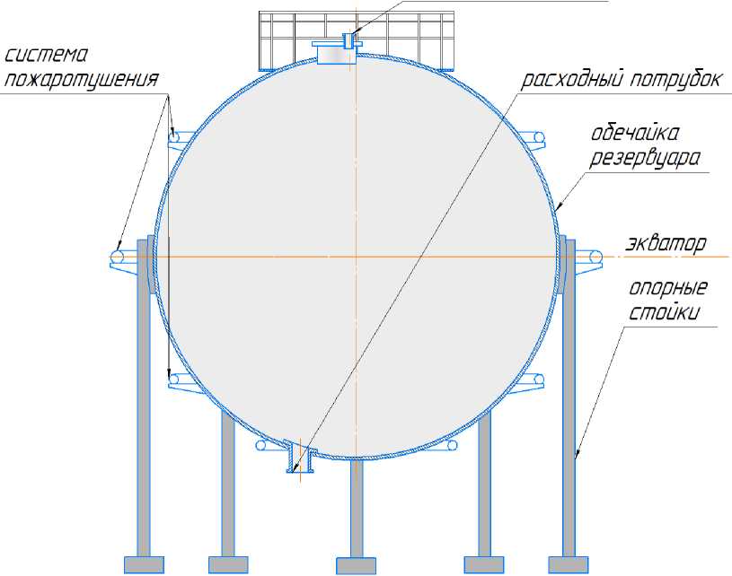 3.17 экватор резервуара: Окружность, расположенная на секущей горизонтальной плоскости, проходящей через центр резервуара, сферической наружной поверхности.