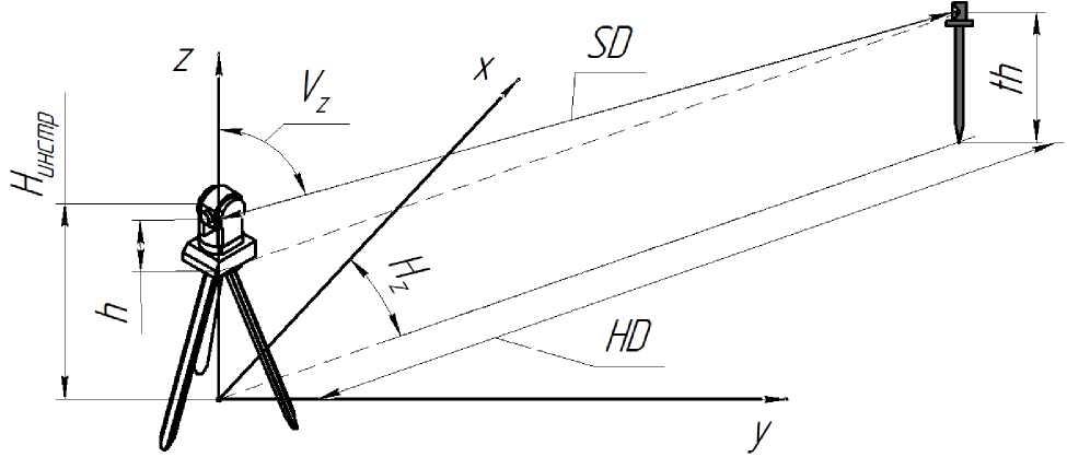 3.4 горизонтальное проложение: Проекция измеренного наклонного расстояния на горизонтальную плоскость.