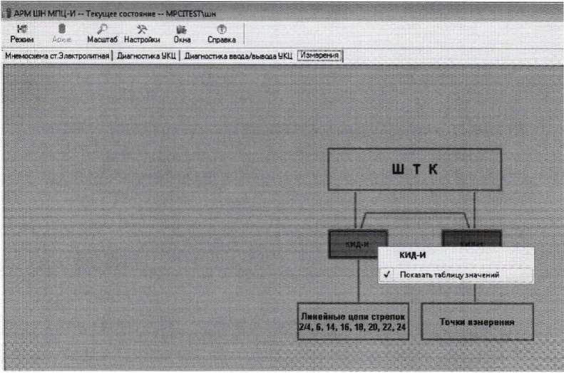 7.2.1 Включить электропитание контроллера и запустить на ПК ПО АРМ ШН. После запуска ПО во вкладке «Измерения» навести указатель «мыши» на пиктограмму КИД-И, нажать правую кнопку «мыши» и в выпадающем меню выбрать пункт «Показать таблицу значений» (см. рисунок 1).