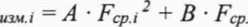 где А, В, С -коэффициенты, взятые из паспорта, прилагаемого к каждому датчику; Fcp.i - среднее значение выходной частоты датчика в i-ой точке диапазона измерений, Гц.