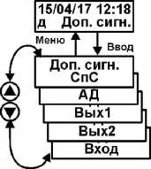 Для настройки доп. входа необходимо войти в подраздел Вход меню ДОП.СИГН. Состав меню подраздела Вход: