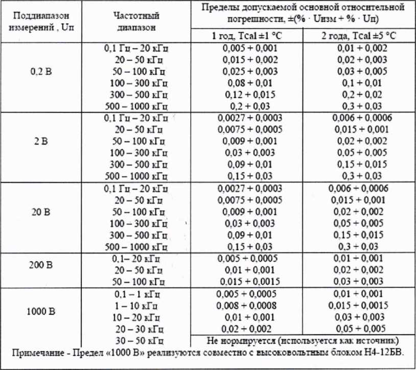 Пределы допускаемой основной относительной погрешности, =(% Uhtm + % ■ Un) | |