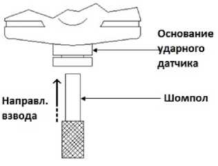 6.2.2. Взвод датчика - вставьте шомпол в основание ударного датчика чтобы нажать на боёк и сжать внутреннюю пружину до тех пор пока боёк не защёлкнется внутренним механизмом (слышен тихий щелчок захвата).