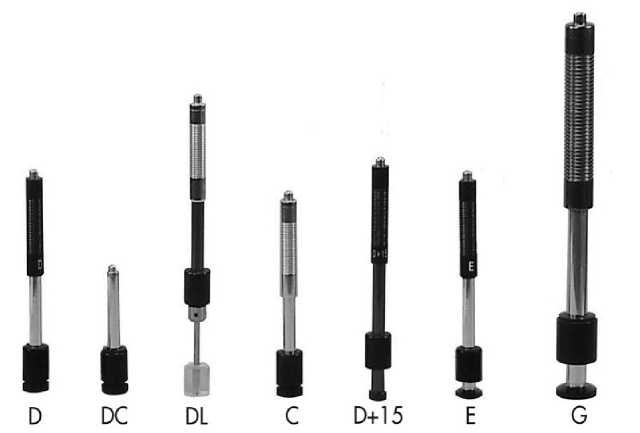 Типы ударных датчиков могут различаться по возможностям доступа к объекту измерений (напр. укороченный тип DC для стеснённых пространств), по прилагаемой энергии к ударному бойку, а также по типам самих ударных бойков. Подобно различным единицам Роквелла (HRA, HRB, HRC и т.д.), ударные датчики могут быть различных типов HLD, HLDC, HLDL, HLC и др., где после обозначения шкалы HL указывается тип применявшегося для измерения датчика (напр. D, DC, DL, C и др.).