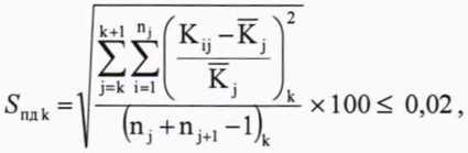 Д. 1.1 Определяют СКО результатов вычислений коэффициентов преобразования в каждой точке рабочего диапазона по формуле