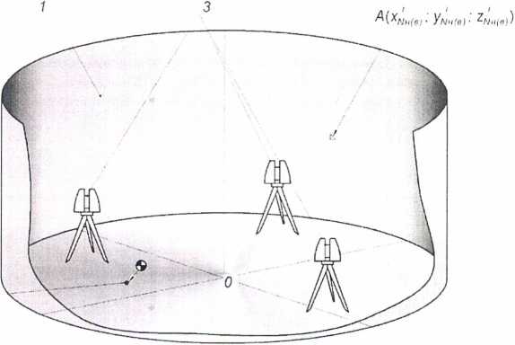 При поверке резервуара вместимость резервуара определяют на основании вычисленного объема ЗО-модели резервуара, построенной с помощью специализированного программного обеспечения по результатам измерений пространственных координат точек, лежащих на внутренней поверхности резервуара.