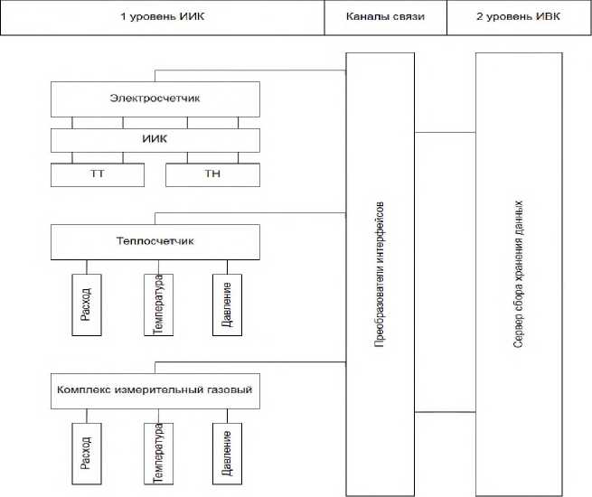 Преобразование определённого вида энергоресурса и вычислительные функции учета энергоресурса, а так же привязку измеренных/вычисленных данных к единому календарному времени, осуществляют счетчики соответствующего энергоресурса (уровень ПИК).