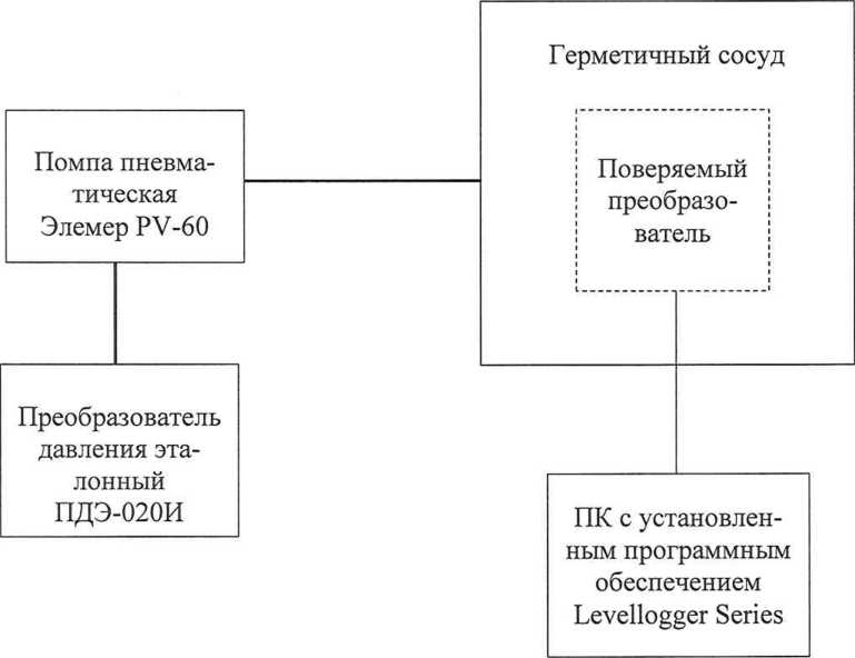 а) Схема определения приведенной (к диапазону измерений) погрешности измерений абсолютного и гидростатического давлений для преобразователей без оптического считывателя USB