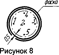 Отклонение длины установочной меры от номинального значения определяют в средней точке 2 и в четырёх точках 1,3, 4 и 5, расположенных на расстоянии 0,7-1 мм от края измерительной поверхности, как показано на рисунке 8.