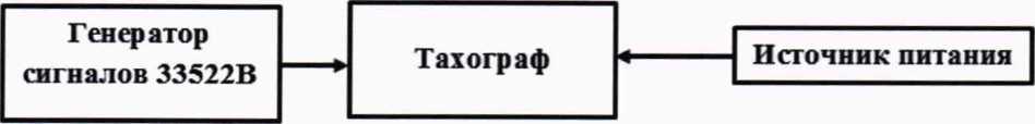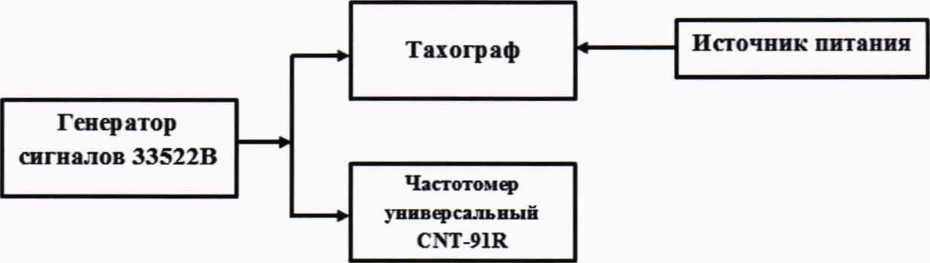 Рисунок 4 - Схема проведения измерений при определении абсолютной погрешности синхронизации шкалы времени внутреннего опорного генератора тахографа со шкалой времени блока СКЗИ