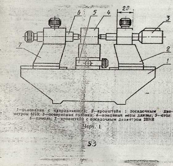 стойка С-1 или С-П и кос-штейн с присоединительным диаметром 8Н8, стол со сфе- -рической вставкой и движ для концевых мер по ГОСТ 10197-70;