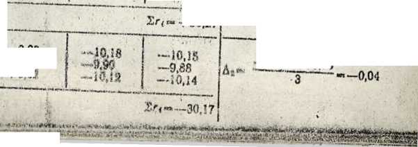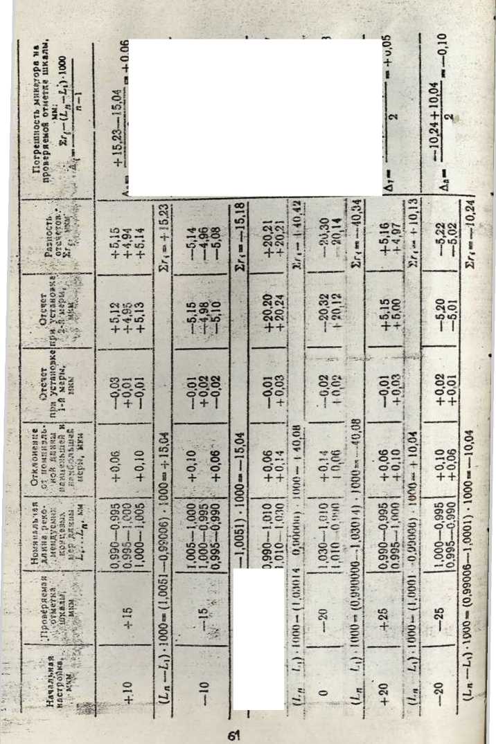 Наибольшая погрешность микатора в пределах от 0 до +30 делена! равна ~(+0,05+0,06)=+0,11 мкм, от 0 до -30 делений (-0,05-0,05)= =-0,10 мкл, в пределах +30 делений не превышает +0,12 мюл.