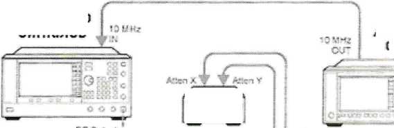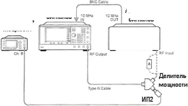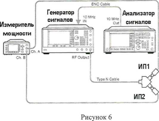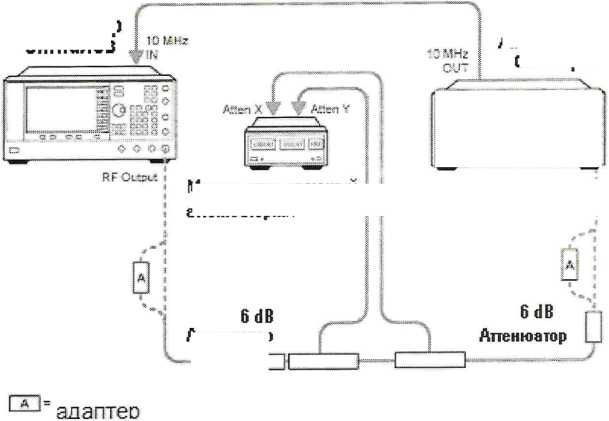 8.7.8 Для определения неравномерности АЧХ с выключенным предусилителем в частотном диапазоне от 3,6*109 до 8*109 Гц, 13«109 Гц, 26,5*109 Гц используют генератор сигналов E8257D (опция 540 или 550), двухпортовый измеритель мощности N1914A с измерительными преобразователями 8485А и делитель мощности (с рабочим частотным диапазоном до