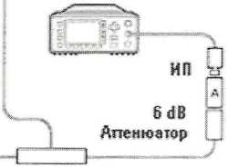 8.7.6 Для определения неравномерности АЧХ с включенным предусилителем используют аттенюатор с показанием ослабления 20 дБ. Соединить приборы как указано на рисунке 8. С генератора подать сигнал амплитудой -10 дБ/мВт. Произвести измерения погрешности деления делителя мощности на частотах 3*10э, 1-106, 5*106, 1-107, 15-107, 45*107, 95*107, 1,25*109, 1,85*109, 2,25*109, 2,95*109, 3,55*109 Гц. Зафиксировать погрешность деления и учитывать ее в дальнейших измерениях.