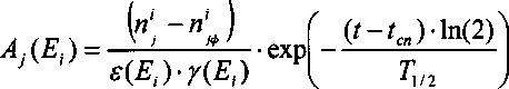 7.3.2.7 Если количество линий, принадлежащих основному радионуклиду, i>2 активность основного радионуклида в калибруемом источнике Aj вычисляют с учетом весов W(Et) всех значимых энергетических линий: