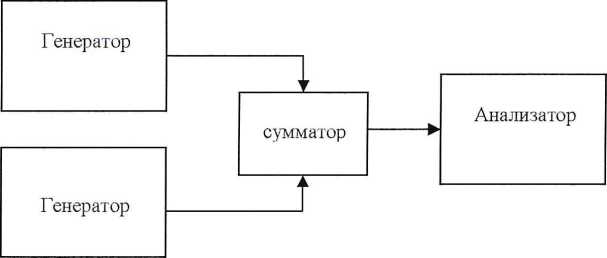 7.3.4.1 Соединить генераторы синусоидальных сигналов, смеситель сигналов и поверяемый анализатор, как показано на рисунке 4.