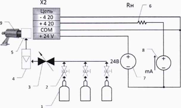 7.4 Собрать схему поверки газоанализатора, которая представлена на рисунке 1.