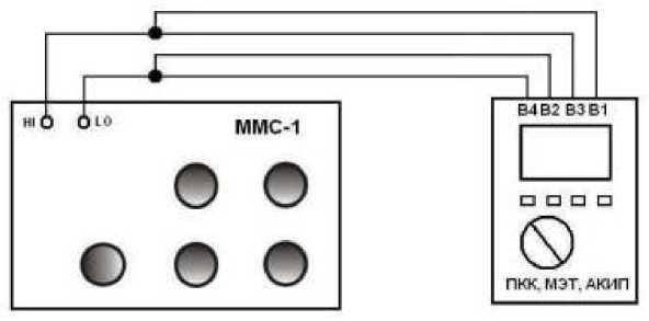 - входные разъемы поверяемого измерителя, предназначенные для подключения измерителя в режиме измерения удельного электрического сопротивления, соединить при помощи измерительных проводов с разъемами магазина мер сопротивлений петли короткого замыкания ММС-1 (см. рисунок 4);