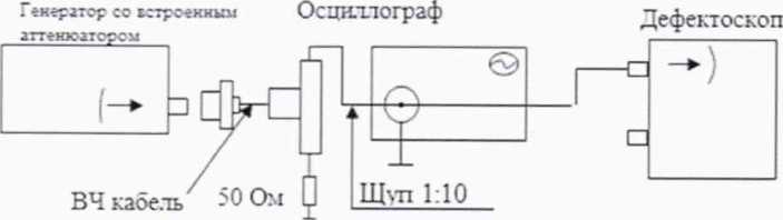 Рисунок 1 - Схема подключения дефектоскопа при проверке во времени установленных ультразвуковых параметров