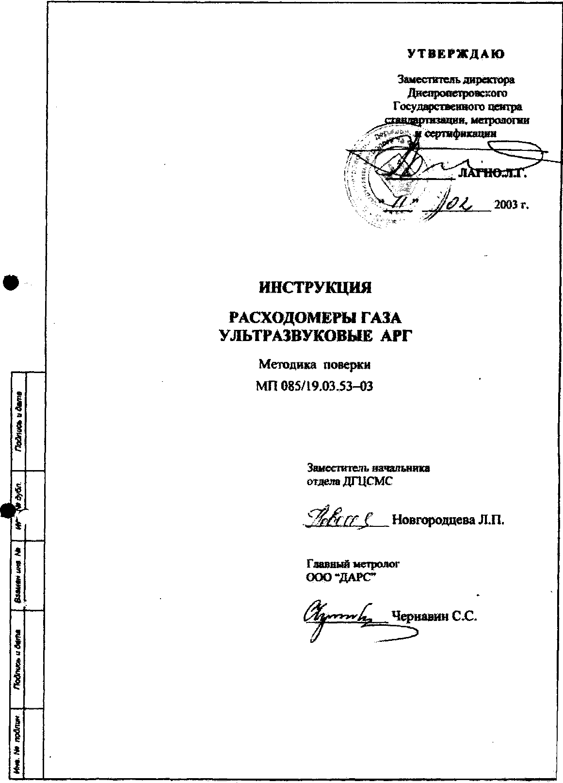 Методика поверки «Расходомеры газа ультразвуковые АРГ» (МП 085/19.03.53-03)
