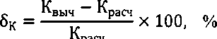 По нормативным документам определяется расчетное значение коэффициента сжимаемости Красч. С дисплея и/или информационного выхода расходомера считывается вычисленное значение коэффициента сжимаемости Квыч. Относительная погрешность при вычислении объемного расхода, объема, приведенных к стандартным и/или нормальным условиям определяется как относительная погрешность вычисления коэффициента сжимаемости газа по формуле:
